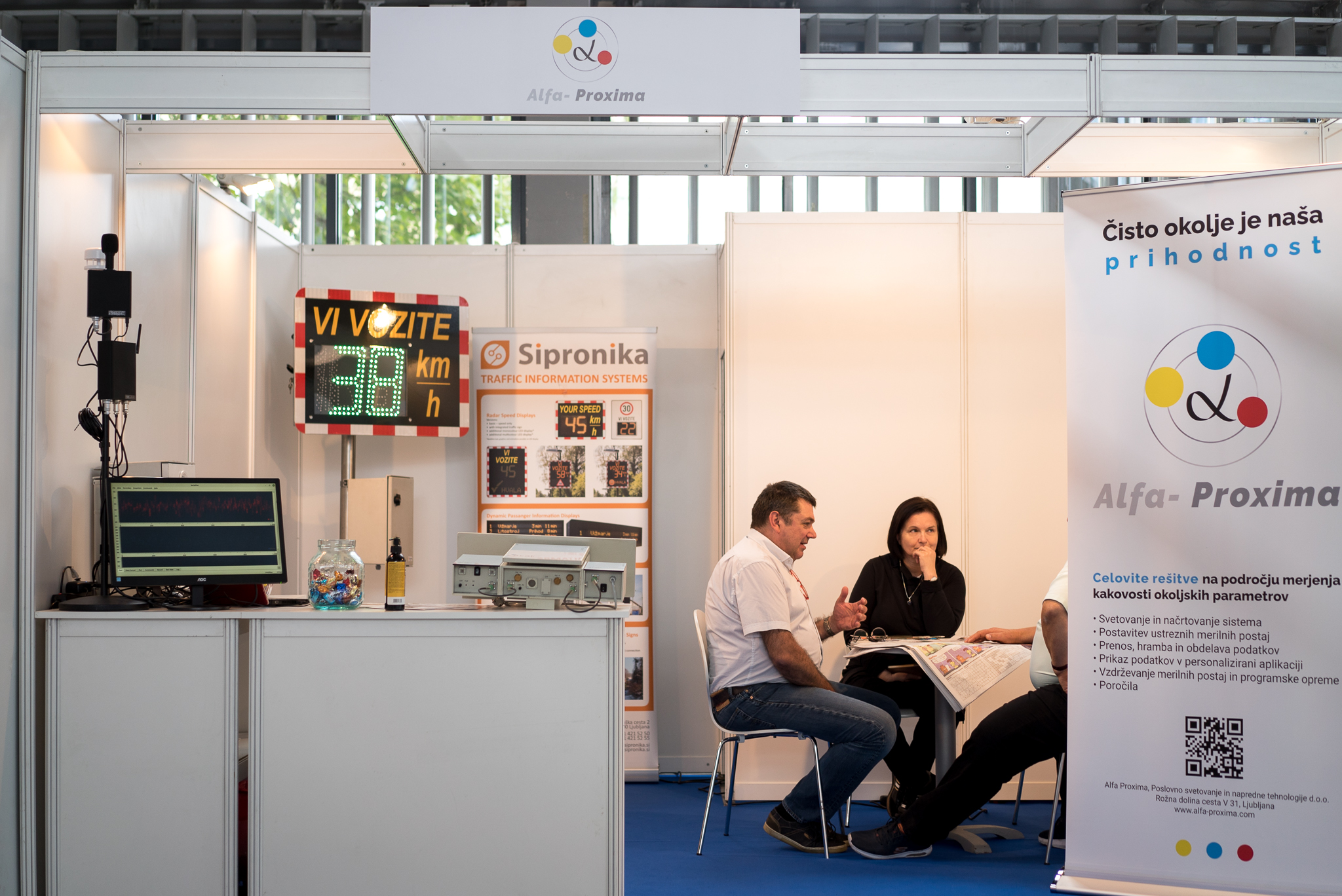Na sejmu smo predstavili naše najnovejše dosežke na področju merjenja kakovosti zraka, ki jih iz že obstoječih meritev širimo še na meritve hrupa ter štetje prometa. Na sejmu smo gostili tudi naše poslovne partnerje iz Nemčije, družbo ACAL BfI in iz Slovenije, družbo Sipronika.
